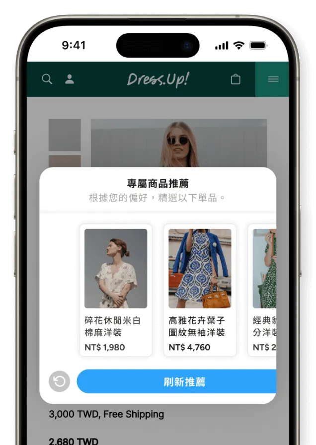 轉化關鍵點,提供精選商品推薦,引導顧客至更多相關選擇。搭載動態分析,打造更個性化的購物體驗,同時延長顧客瀏覽時間,提升成交機會。