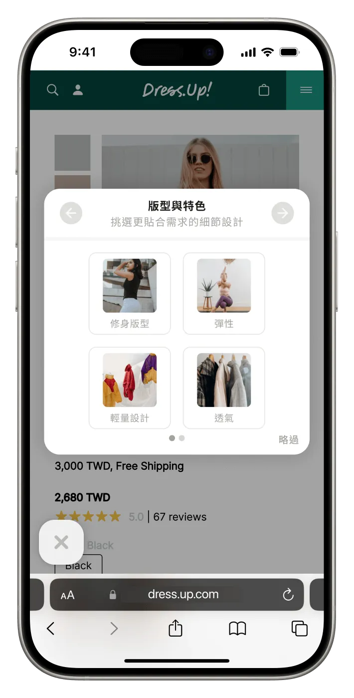 打造專屬導購流程,精準引導顧客每一步。從場合、材質到折扣,靈活定制篩選邏輯,滿足您的商業需求。創造獨特購物體驗,輕鬆將瀏覽者轉化為忠實顧客。