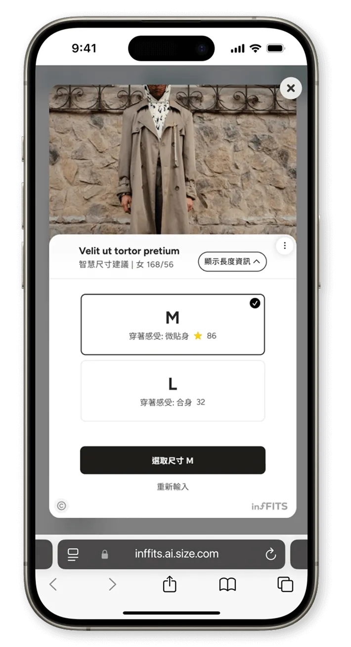 運用 AI 技術結合大數據,重新定義尺寸選購體驗,讓每次購物都能更輕鬆,快速下單。