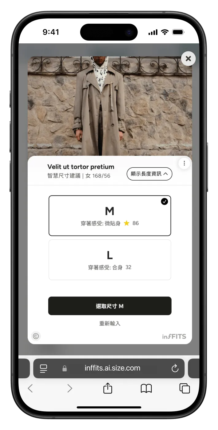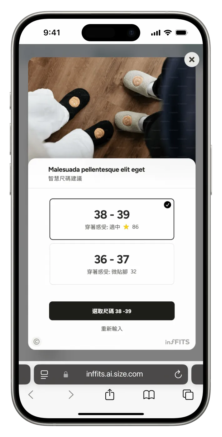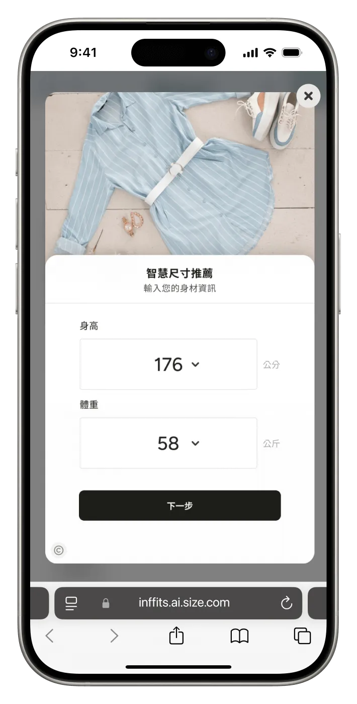 運用 AI 技術結合大數據,重新定義尺寸選購體驗,讓每次購物都能更輕鬆,快速下單。